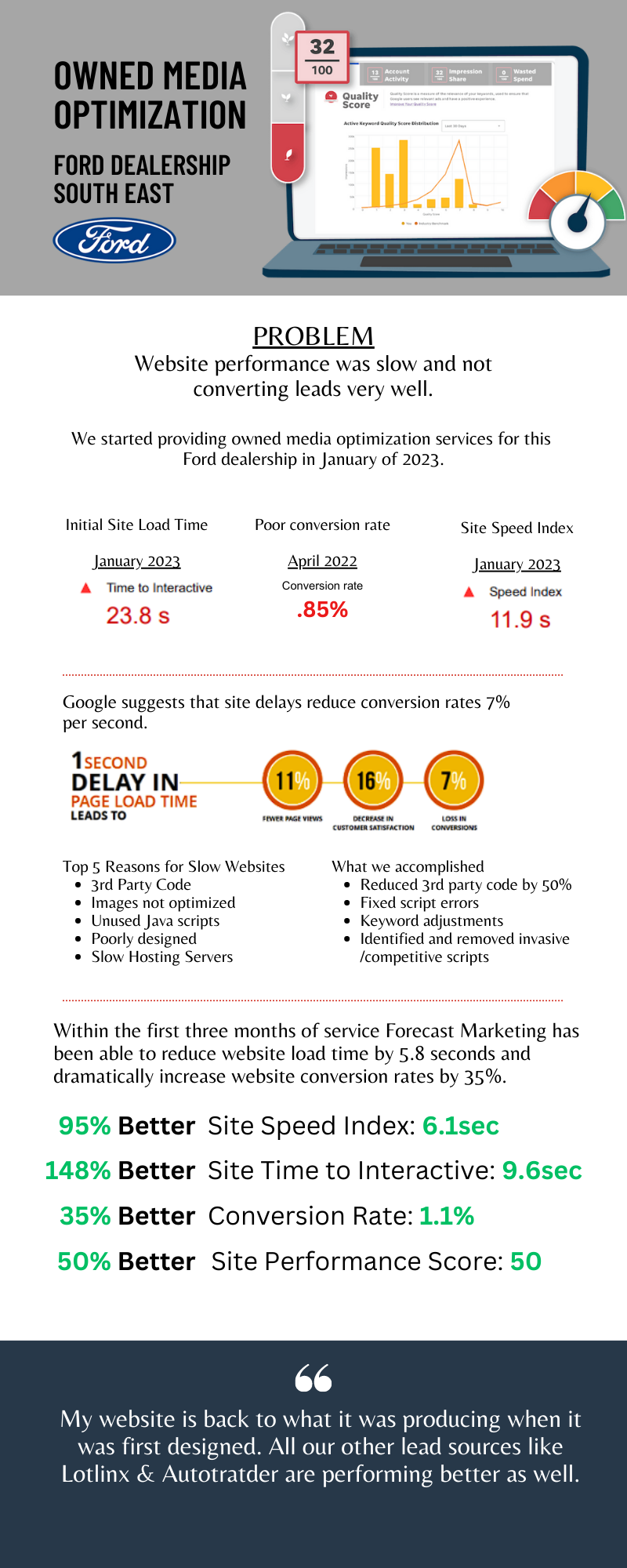 Ford dealership in the southeast US needed help with their website.